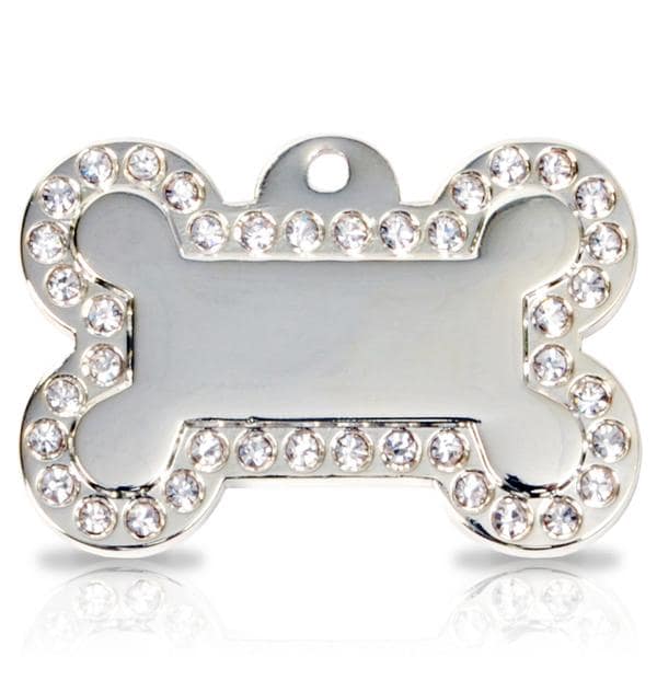 Nimilaatat.com etusivu / Glitter-ja Glamour-nimilaatat / Koiran Nimilaatta – Glamour hopeoitu ISO luu, kirkkaat strassit