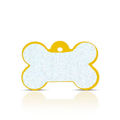 Koiran nimikyltti – Heijastava Hi-Line alumiini kulta ISO luu 3,9 x 2,6 cm.