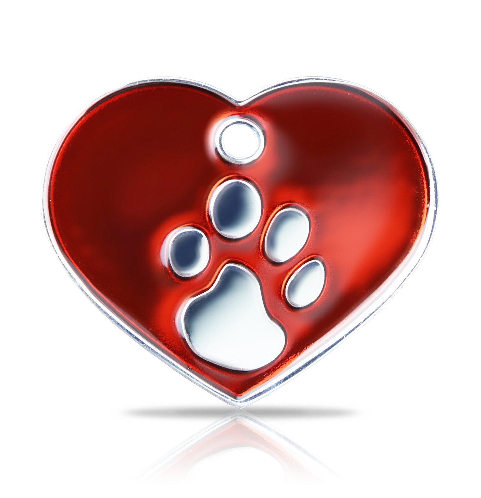 Koiran nimikyltti – Fashion hopeoitu punainen ISO sydän 3,8 x 3,2cm tassukuvioinnilla.