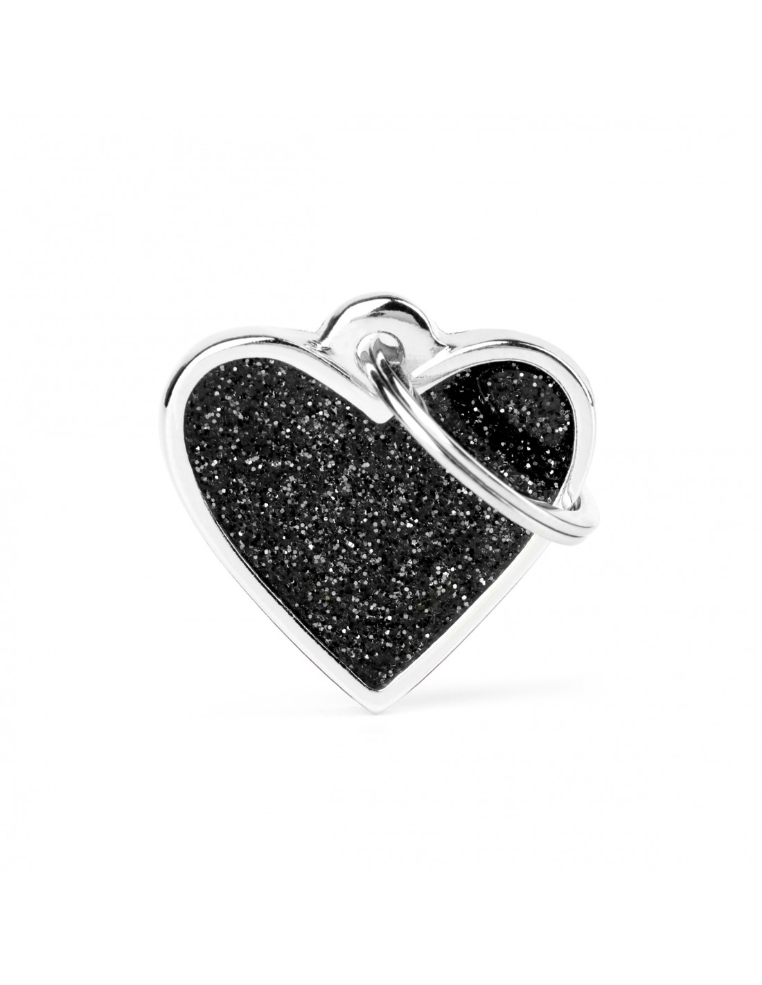 Koiran nimikyltti – GLITTER musta pieni sydän 2,5 x 2,8cm.